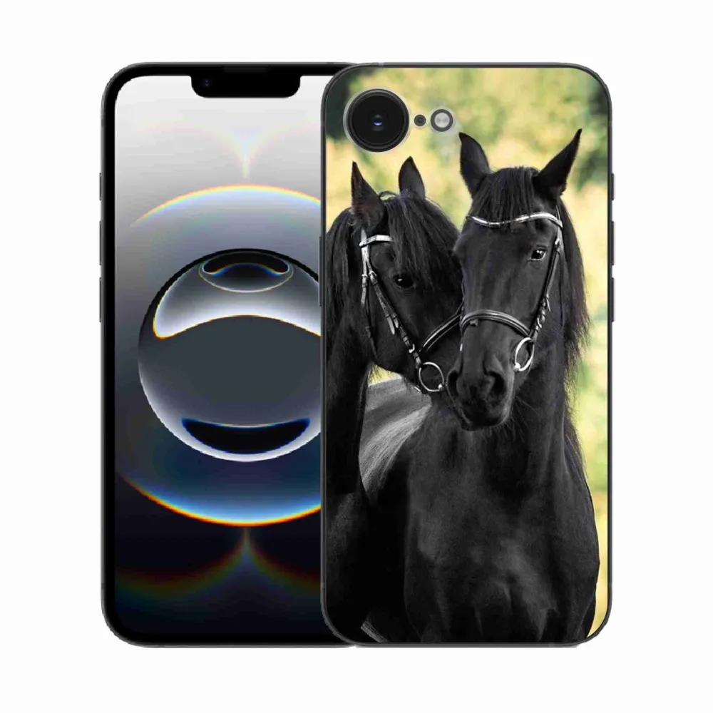 Rugalmas zselés tok mmCase képpel iPhone 16e készülékhez - két fekete ló