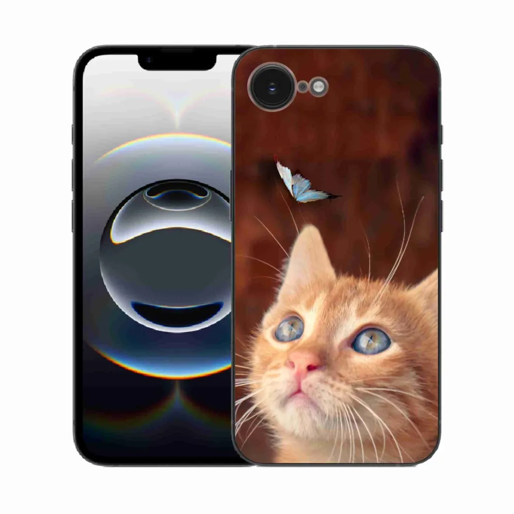 Rugalmas zselés tok mmCase képpel iPhone 16e készülékhez - pillangó és cica