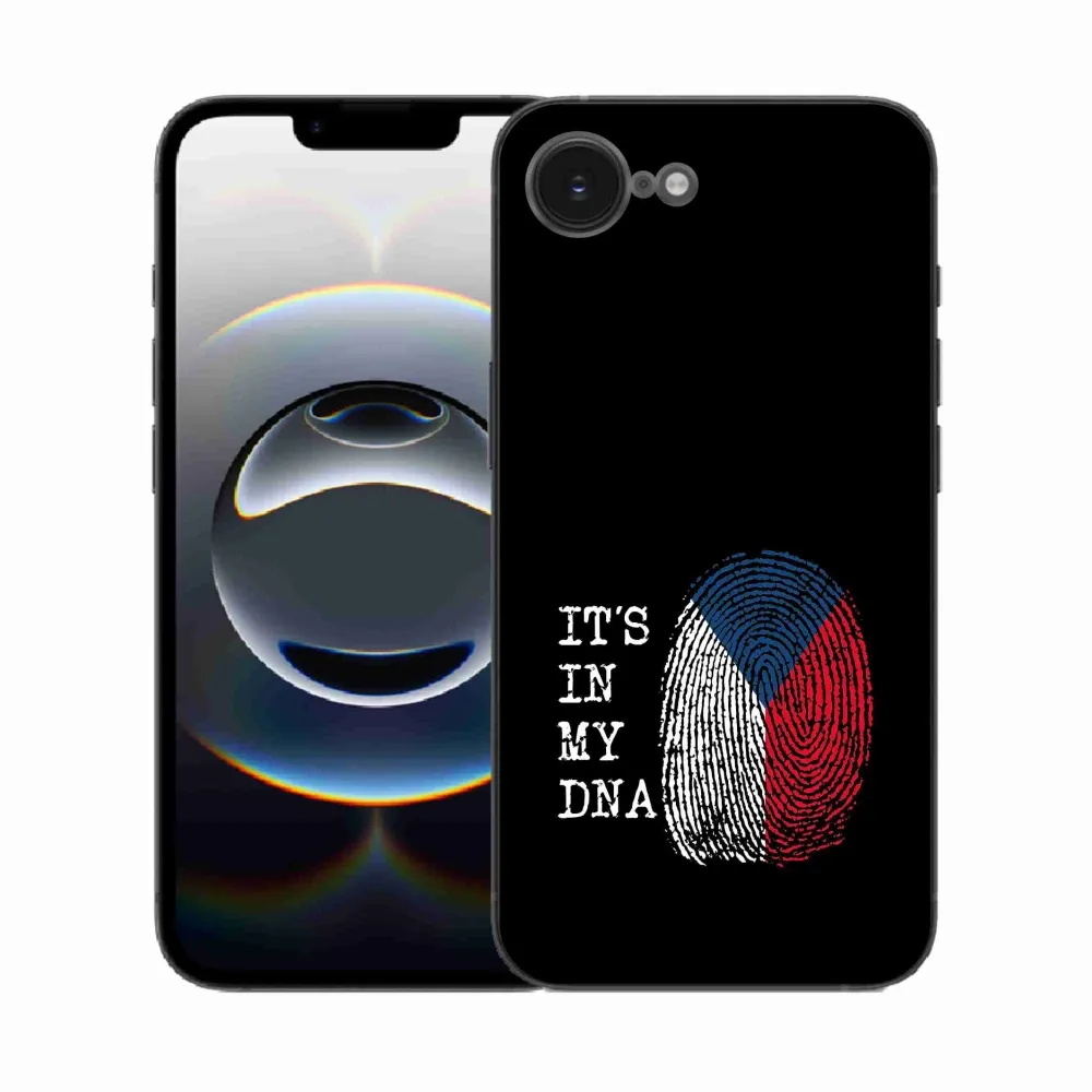 Zselés borítás mmCase iPhone 16e készülékhez - zászlós ujjlenyomat fekete háttérrel