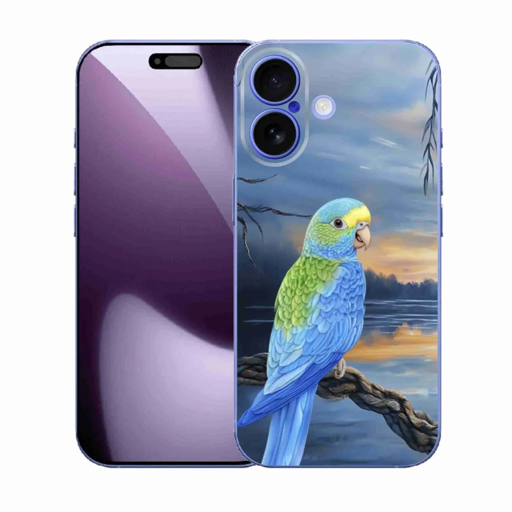 Rugalmas zselés tok mmCase képpel iPhone 17 készülékhez - kék papagáj