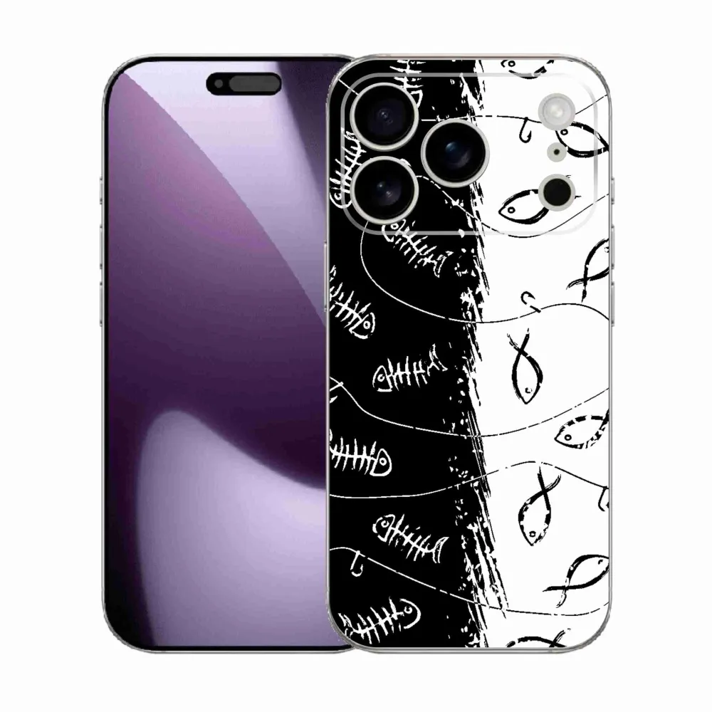 Rugalmas zselés borító mmCase kép iPhone 17 Pro - csontvázak és halak - képekkel