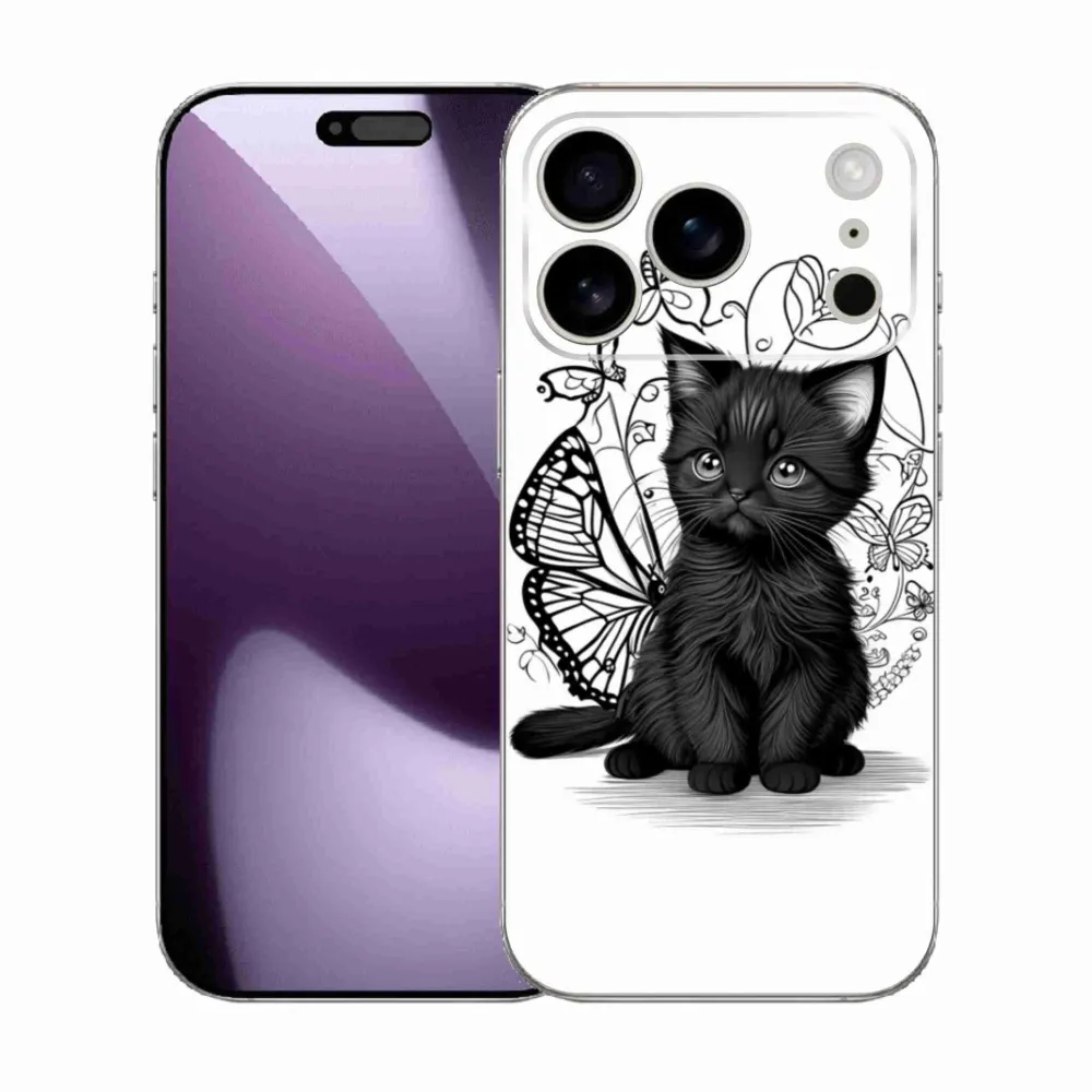 Rugalmas zselés tok mmCase képpel iPhone 17 Pro készülékhez - fekete cica