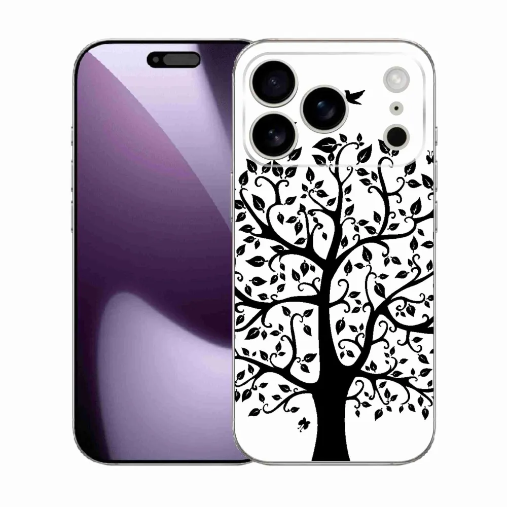 Rugalmas zselés borítás mmCase kép iPhone 17 Pro - fekete-fehér fa