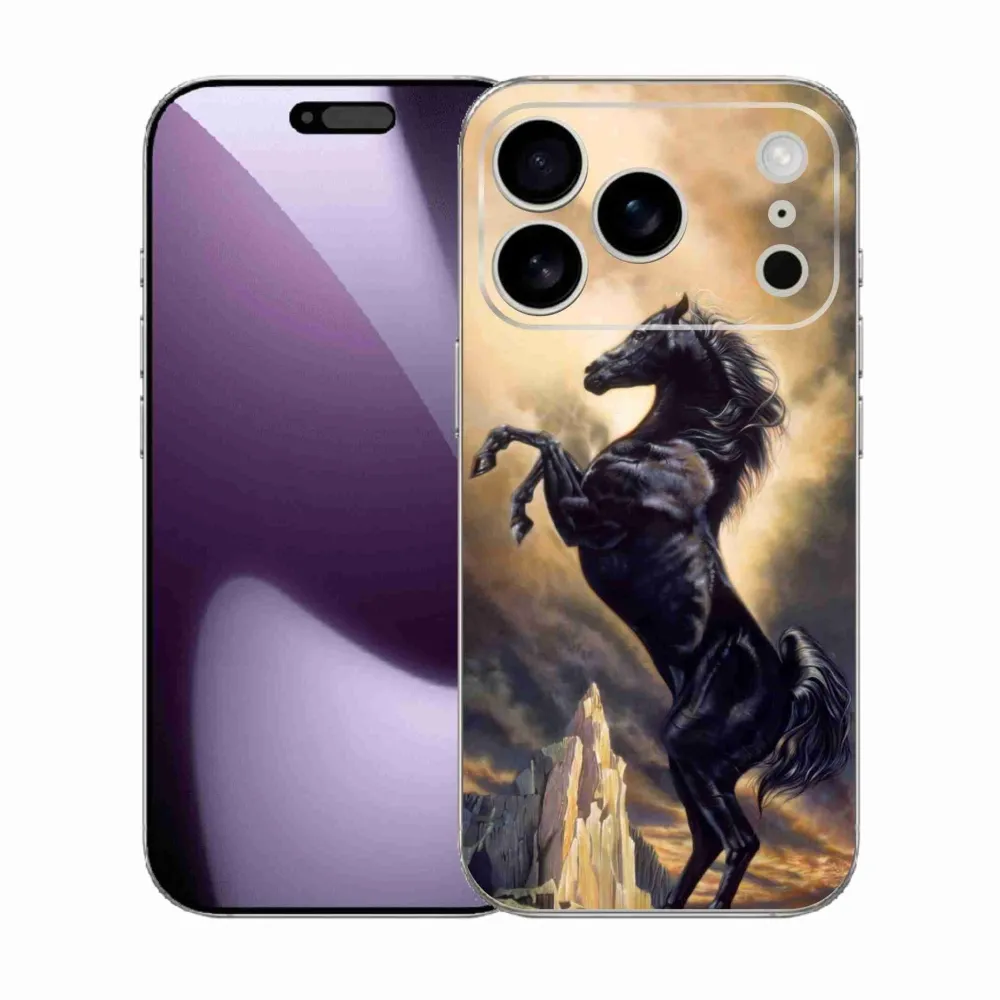 Zselés borítás mmCase iPhone 17 Pro készülékhez - fekete rajzfilm ló