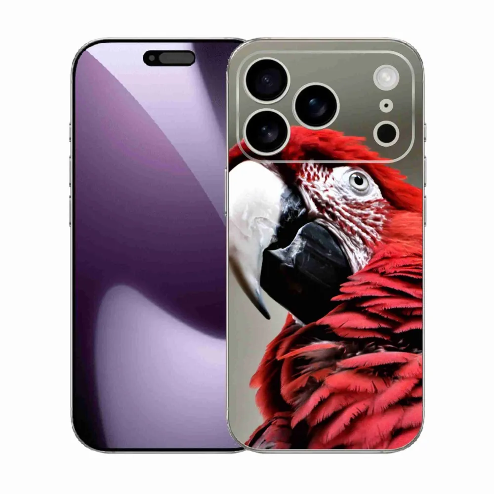 Rugalmas zselés borítás mmCase képpel iPhone 17 Pro - papagáj és piros