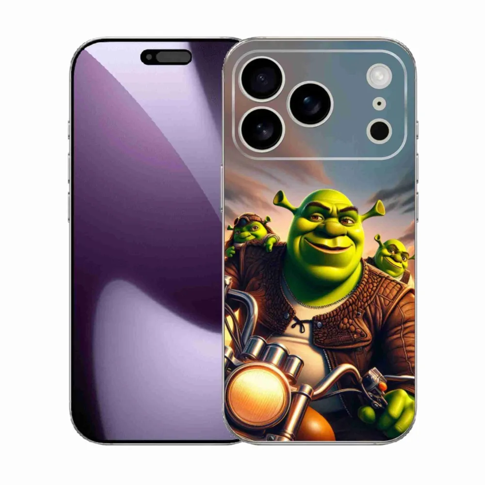 Zselés borítás mmCase iPhone 17 Pro készülékhez - Shrek egy motorkerékpáron