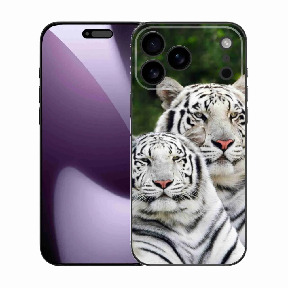 Rugalmas zselés tok mmCase képpel iPhone 17 Pro Max készülékhez - fehér tigrisek