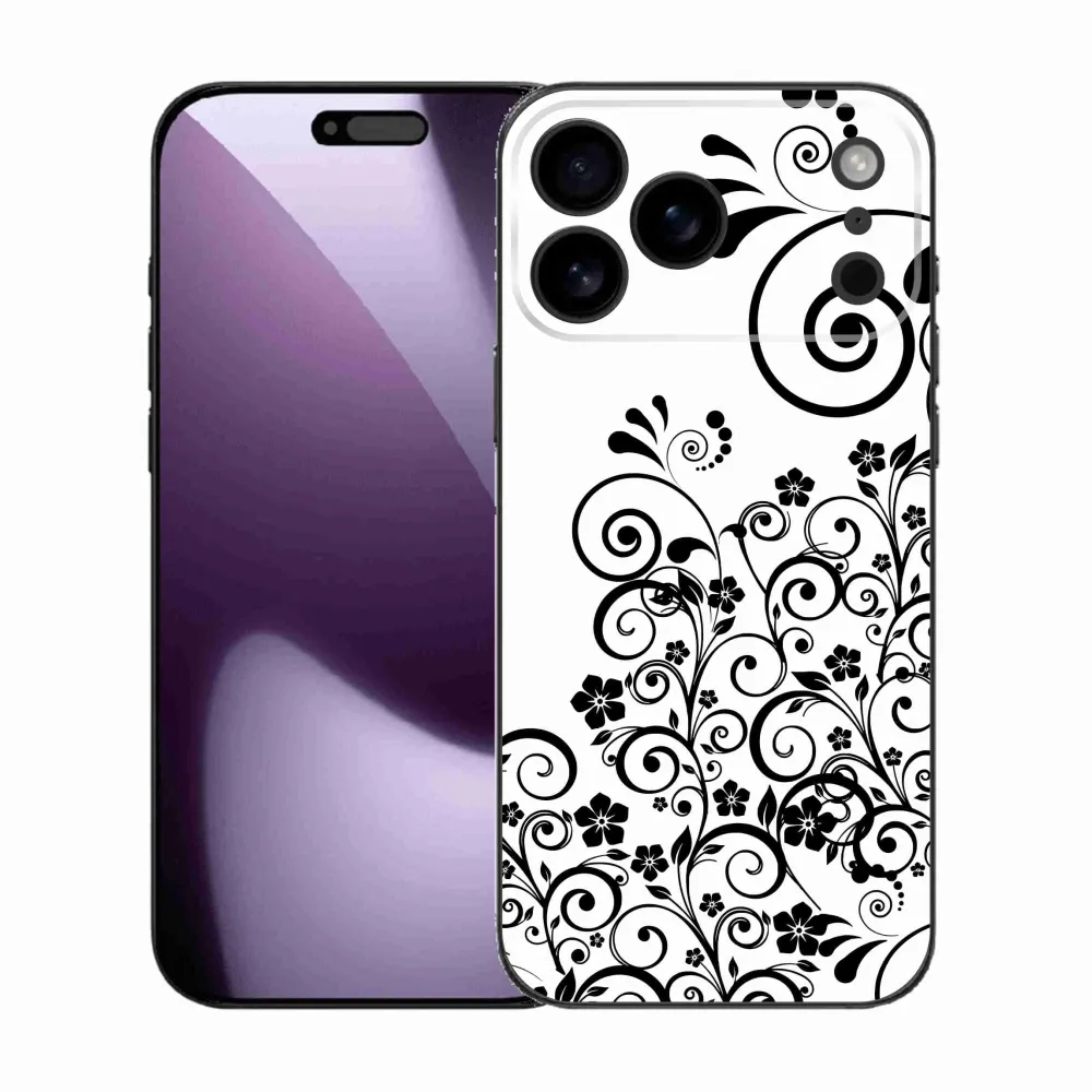 Rugalmas zselés tok mmCase képpel iPhone 17 Pro Max készülékhez - fekete és fehér virágminták