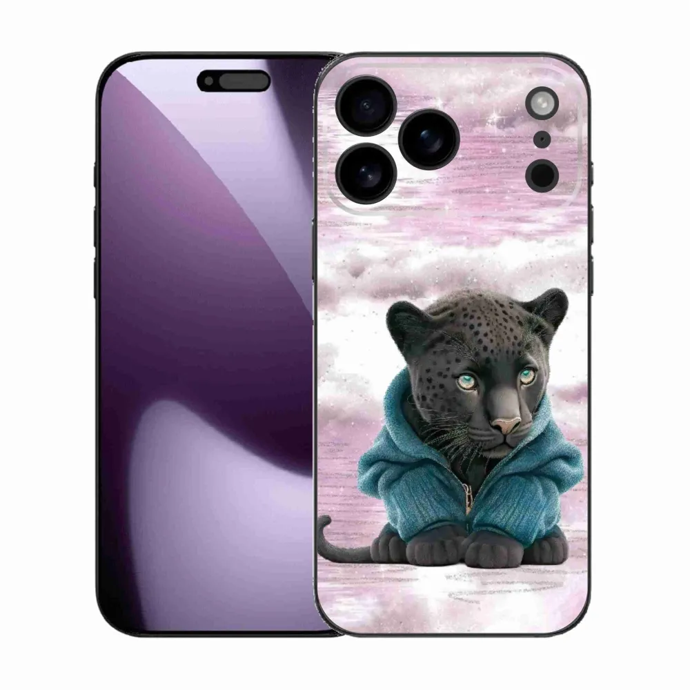 Rugalmas zselés tok mmCase képpel iPhone 17 Pro Max készülékhez - fekete párduc pulóverben