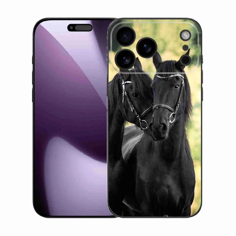 Rugalmas zselés tok mmCase képpel iPhone 17 Pro Max készülékhez - két fekete ló