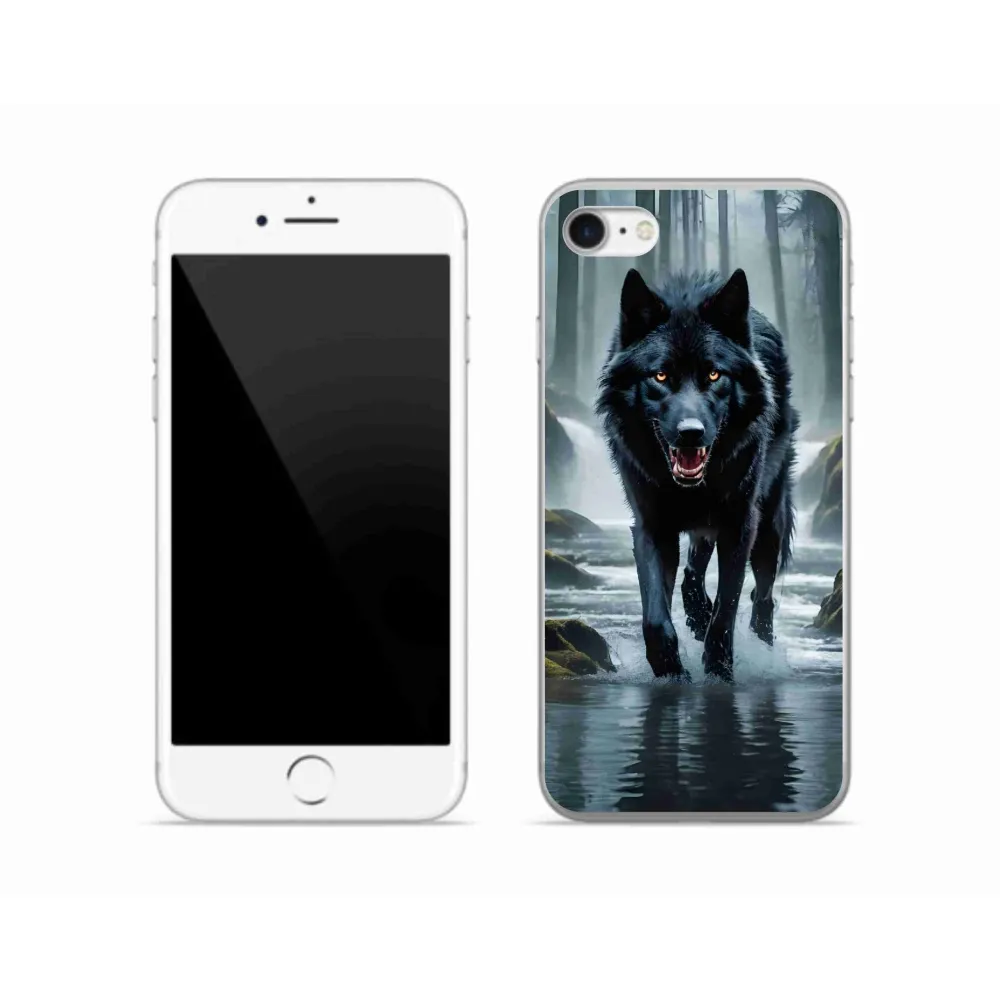 Rugalmas zselés tok mmCase képpel iPhone SE (2020) - fekete farkas