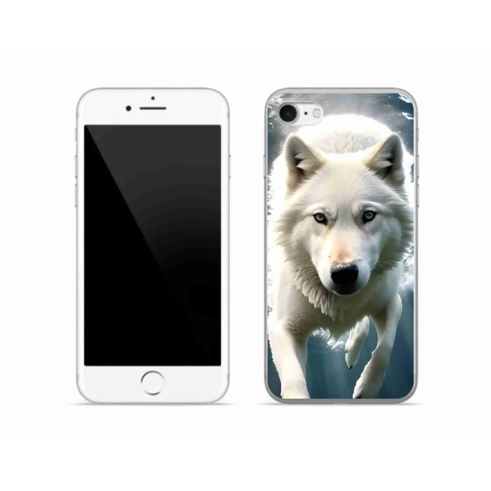 Rugalmas zselés tok mmCase képpel iPhone SE (2022) - fehér farkas
