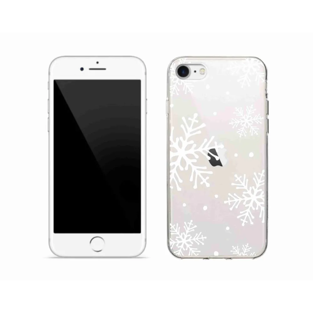 Rugalmas zselés tok mmCase képpel iPhone SE (2022) - fehér hópelyhek átlátszó háttérrel
