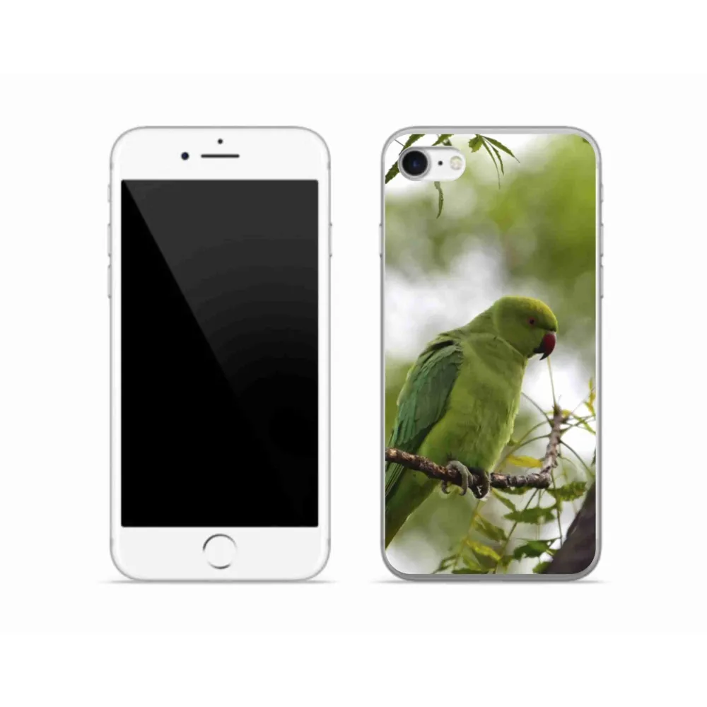 Rugalmas zselés tok mmCase képpel iPhone SE (2022) - zöld papagájhoz