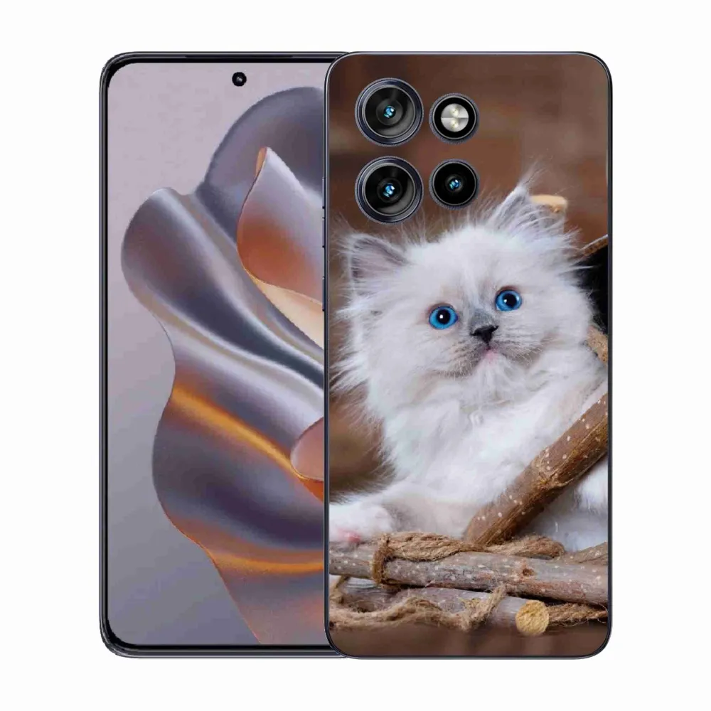 Rugalmas zselés tok mmCase képpel Motorola Edge 50 Neo - fehér cica - fehér cica