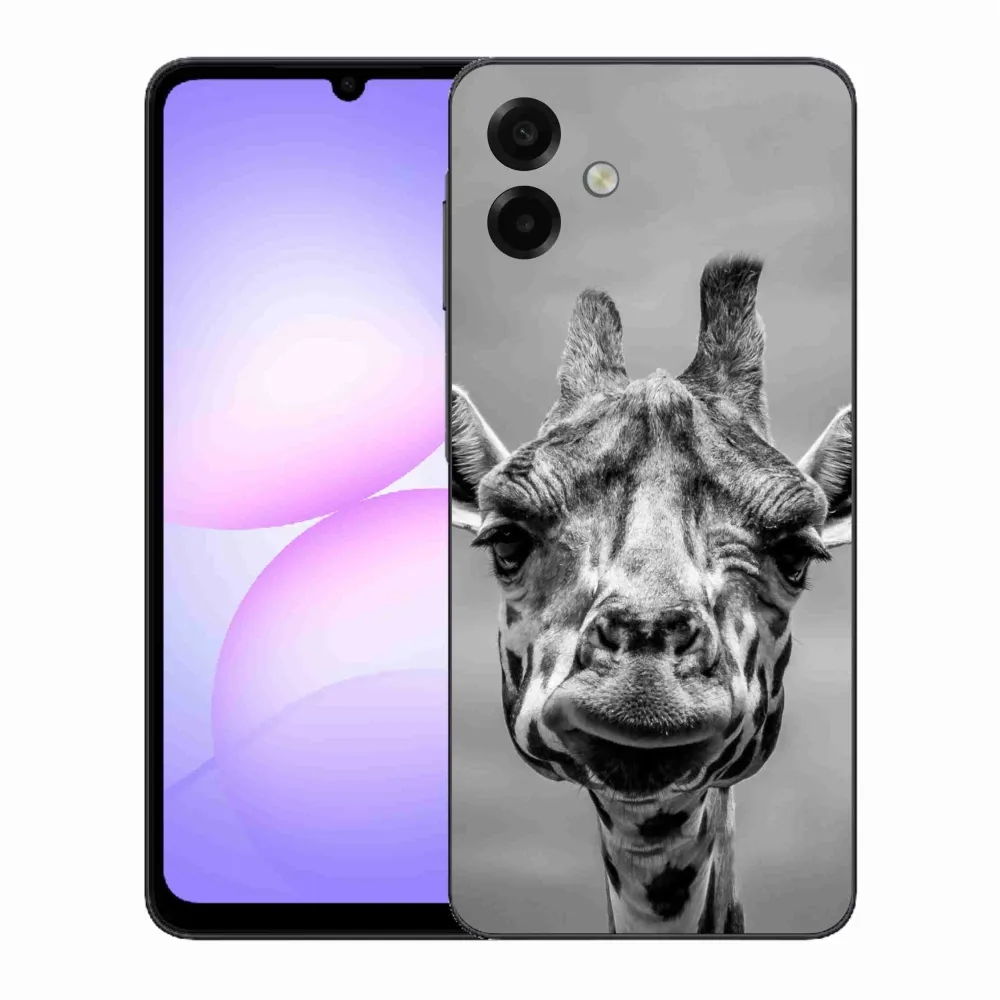Rugalmas zselés tok mmCase a Samsung Galaxy A07 4G képével - fekete-fehér zsiráf