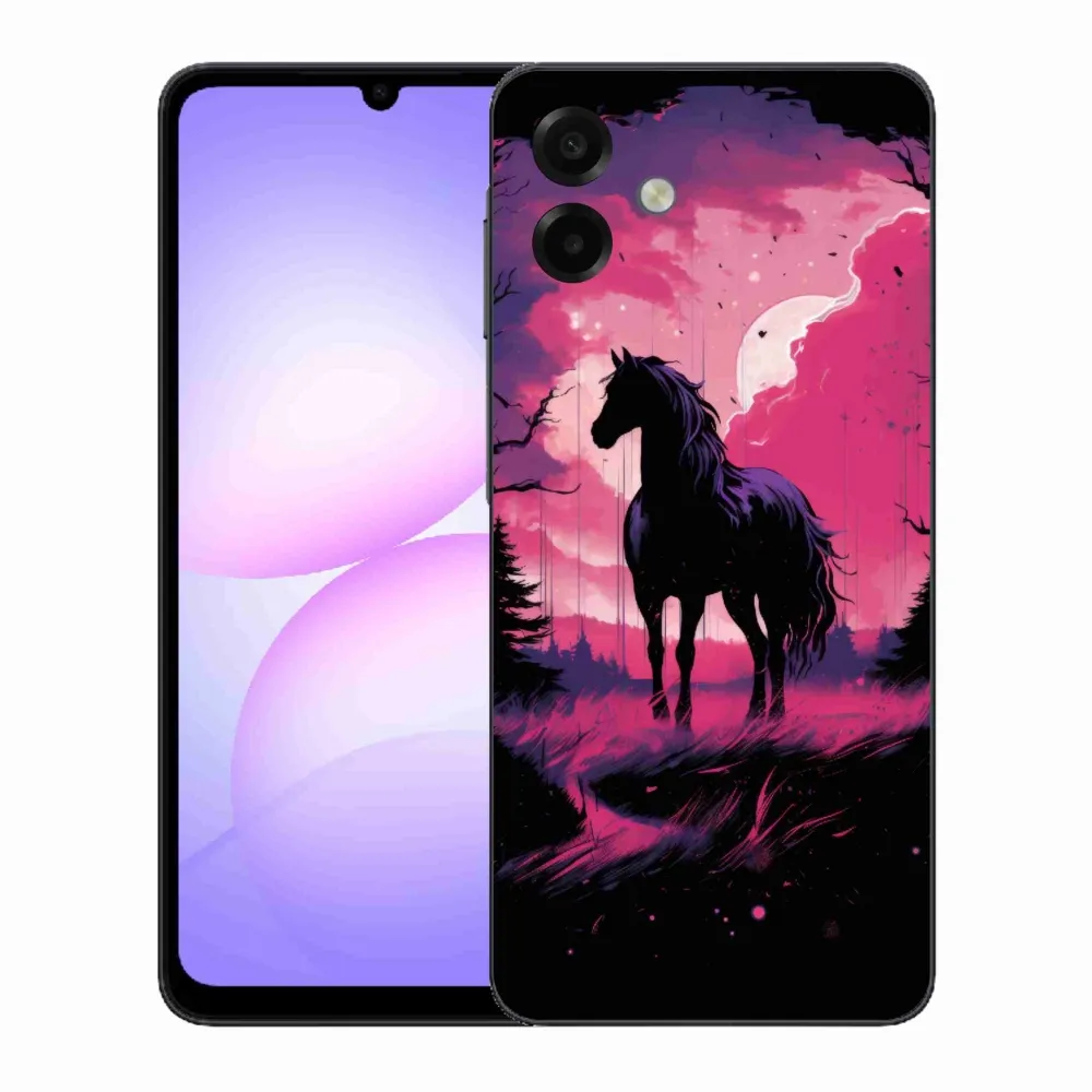 Rugalmas gél tok mmCase kép Samsung Galaxy A07 4G - fekete rajzfilm ló 1