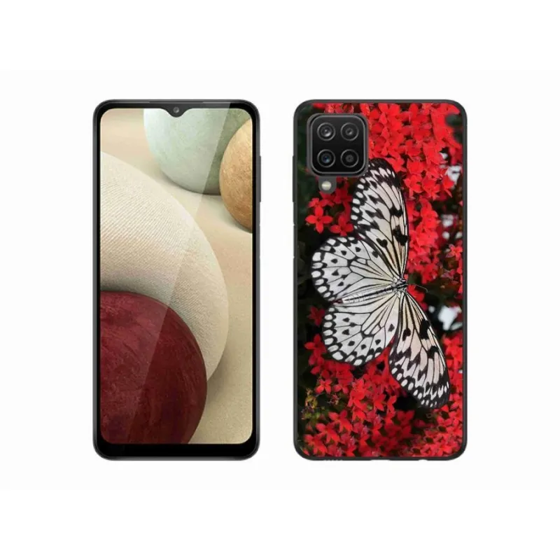 Zselés borítás mmCase Samsung Galaxy A12 - fekete-fehér pillangó 1