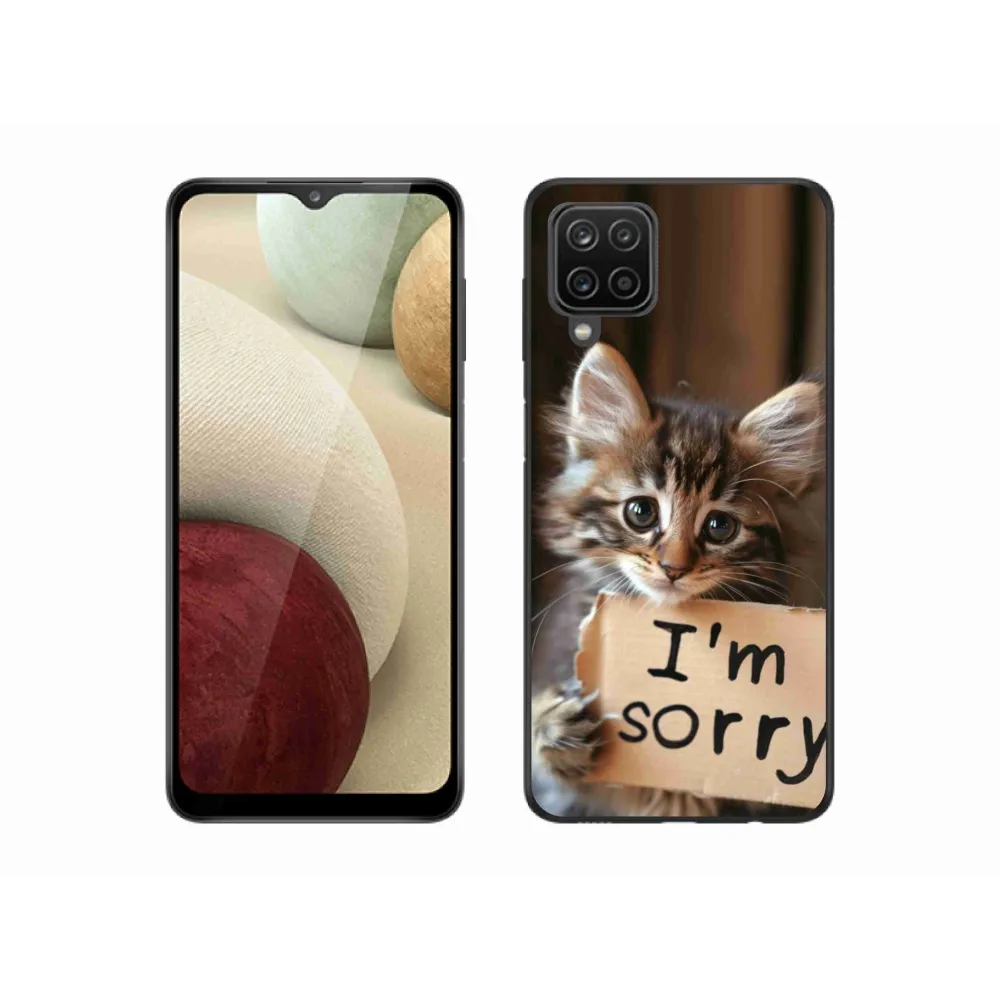 Zselés borítás mmCase Samsung Galaxy A12 készülékhez - macska bocsánatkérése