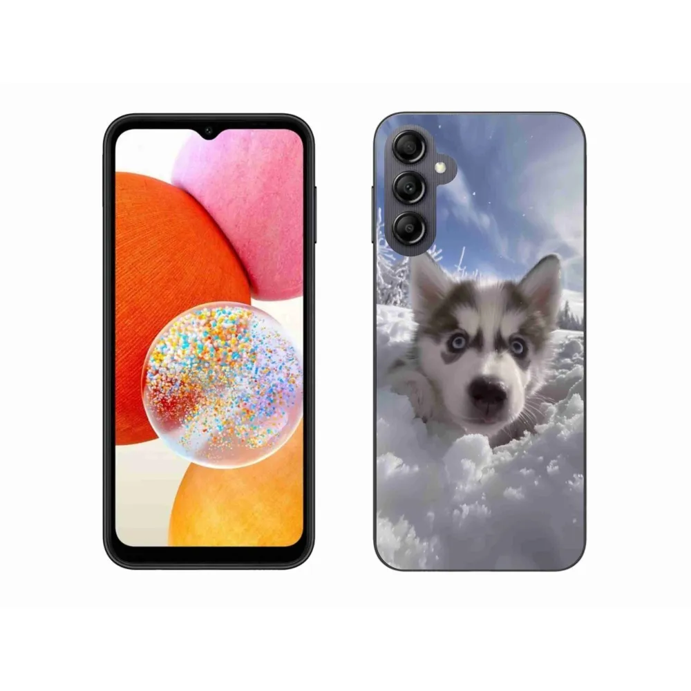 Rugalmas zselés tok mmCase a Samsung Galaxy A14 4G/5G képével - husky a hóban