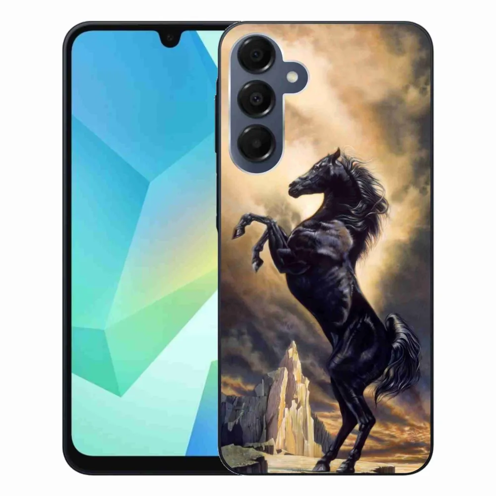 Rugalmas zselés tok mmCase a Samsung Galaxy A16 4G/5G képével - fekete rajzfilm ló