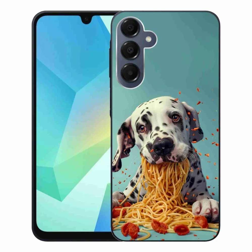 Rugalmas kesztyű tok mmCase a Samsung Galaxy A16 4G/5G képével - dalmatin és spagetti