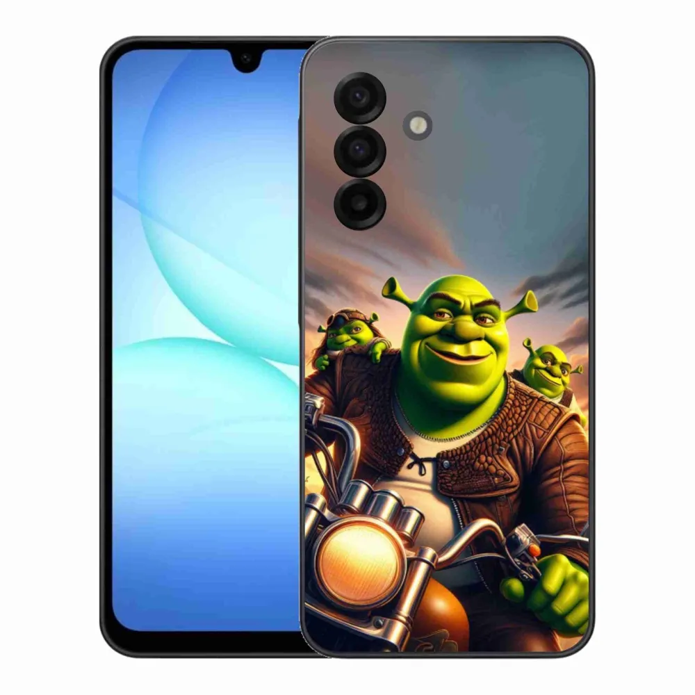 Rugalmas zselés tok mmCase a Samsung Galaxy A17 4G/5G képével - Shrek egy motorkerékpáron