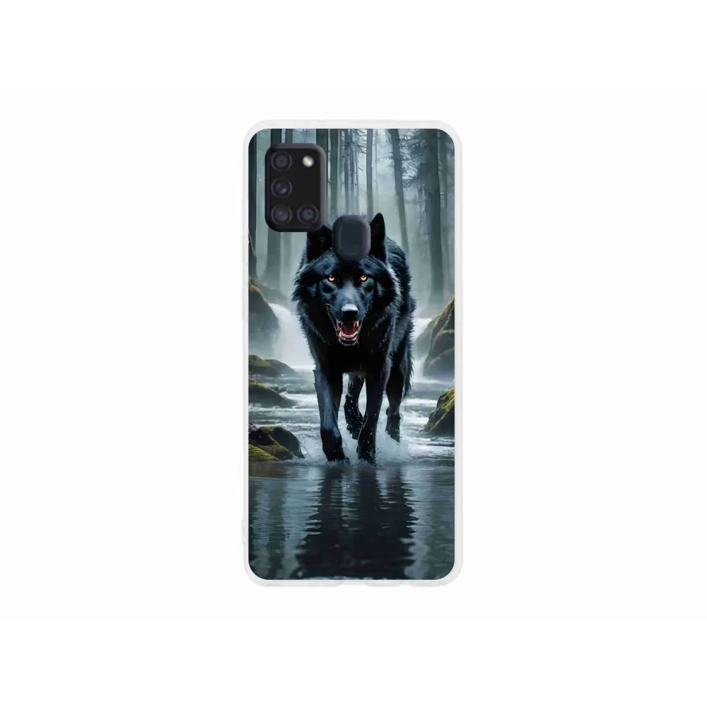 Rugalmas zselés tok mmCase képpel Samsung Galaxy A21s - fekete farkas
