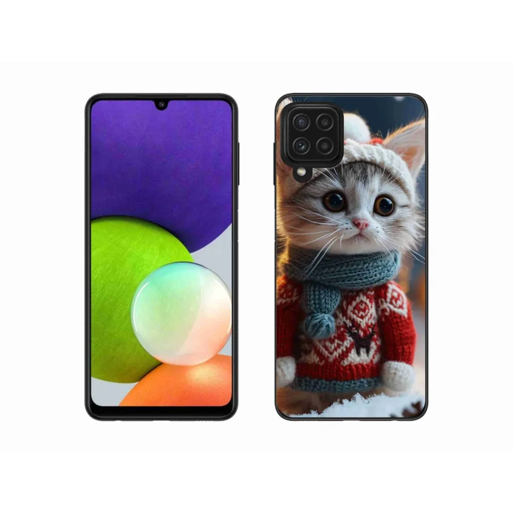 Rugalmas zselés tok mmCase a Samsung Galaxy A22 4G képével - cica pulóverben