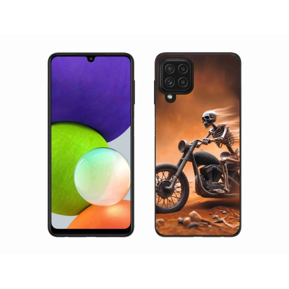 Rugalmas zselés tok mmCase s motivem Samsung Galaxy A22 4G - csontváz egy motorkerékpárra