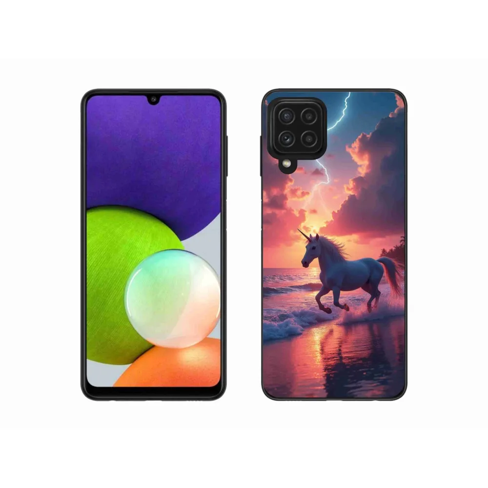 Rugalmas zselés tok mmCase a Samsung Galaxy A22 4G képével - egyszarvú a tengerparton