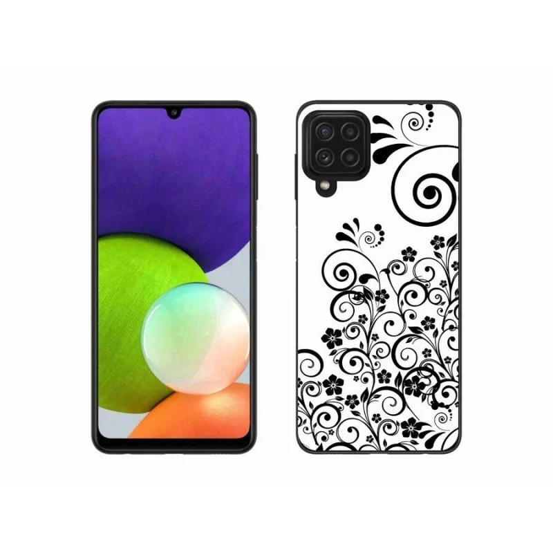 Zselés borítás mmCase Samsung Galaxy A22 4G - fekete és fehér virágmintás borítás Samsung Galaxy A22 4G-hez