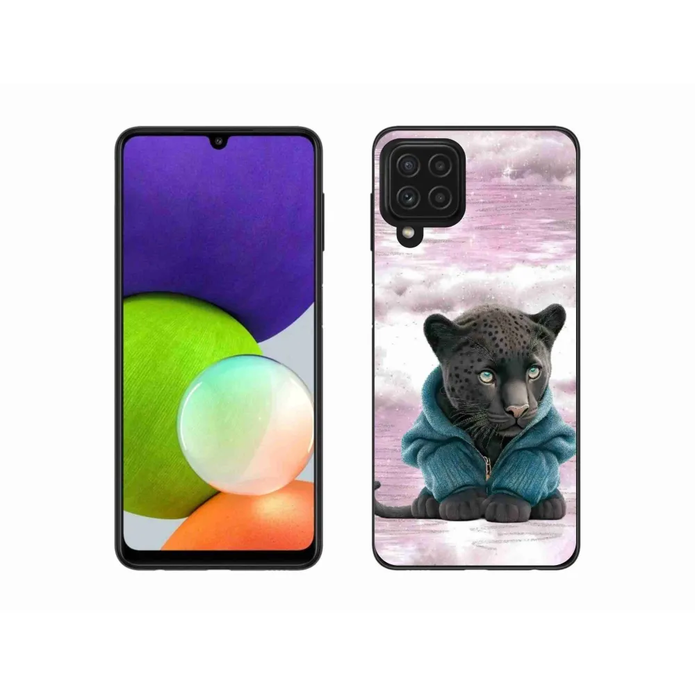 Zselés borítás mmCase Samsung Galaxy A22 4G - fekete párduc pulóverben