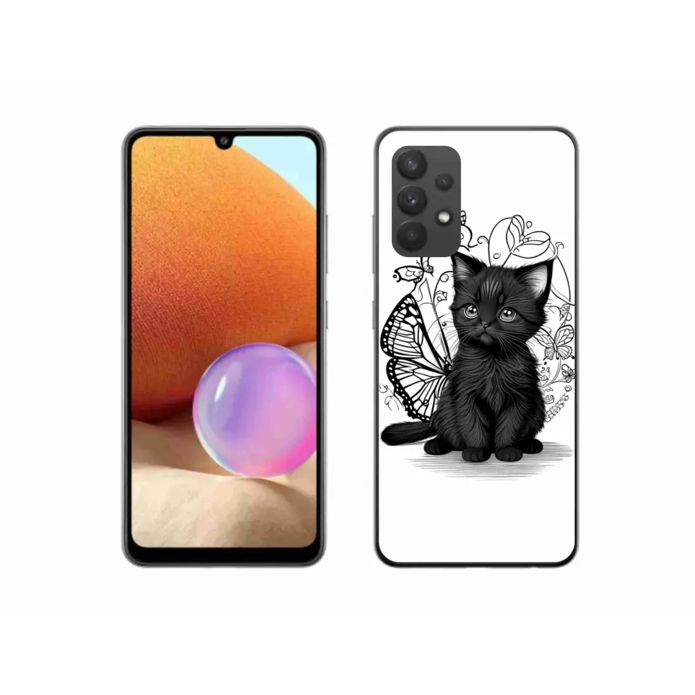 Rugalmas zselés tok mmCase képpel Samsung Galaxy A32 4G - fekete cica