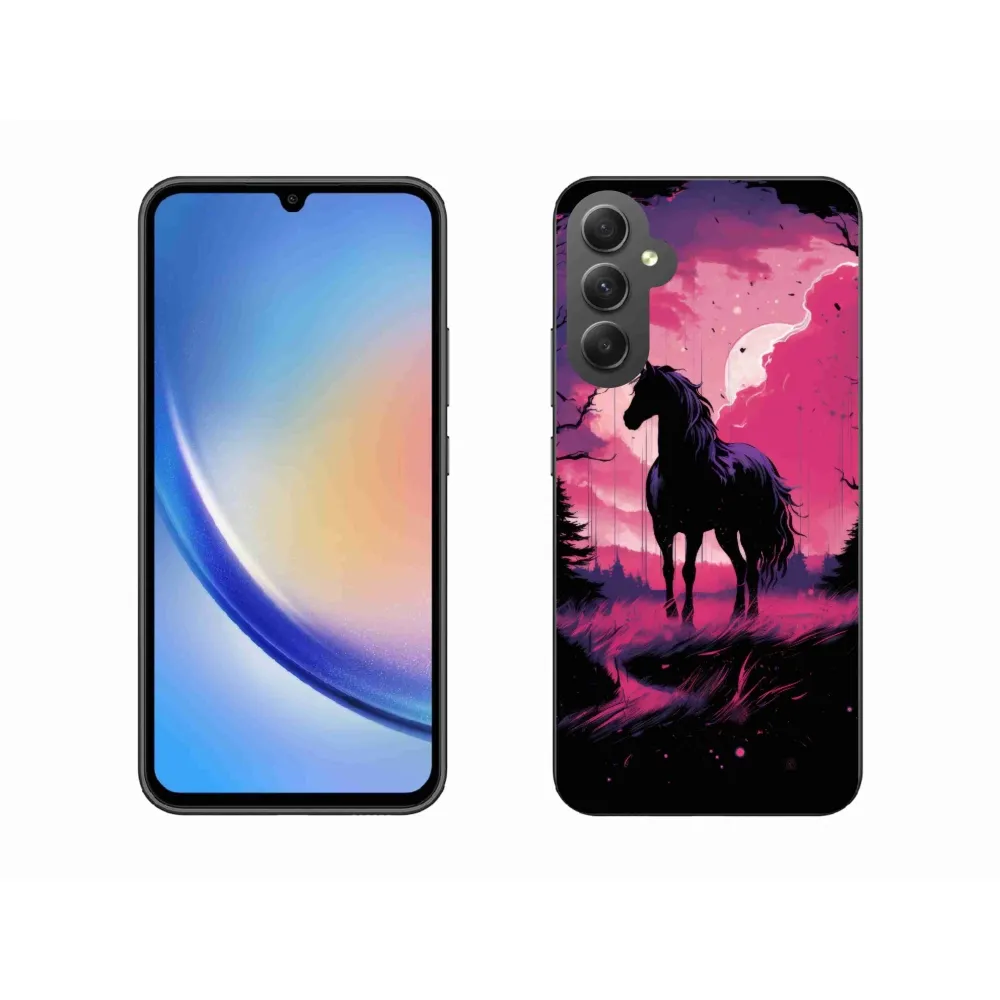 Rugalmas gél tok mmCase kép Samsung Galaxy A34 5G - fekete rajzfilm ló 1