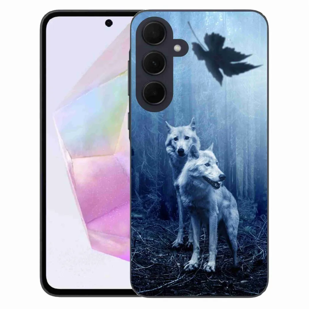 Rugalmas zselés borító mmCase a Samsung Galaxy A35 5G képével - farkasok az erdőben