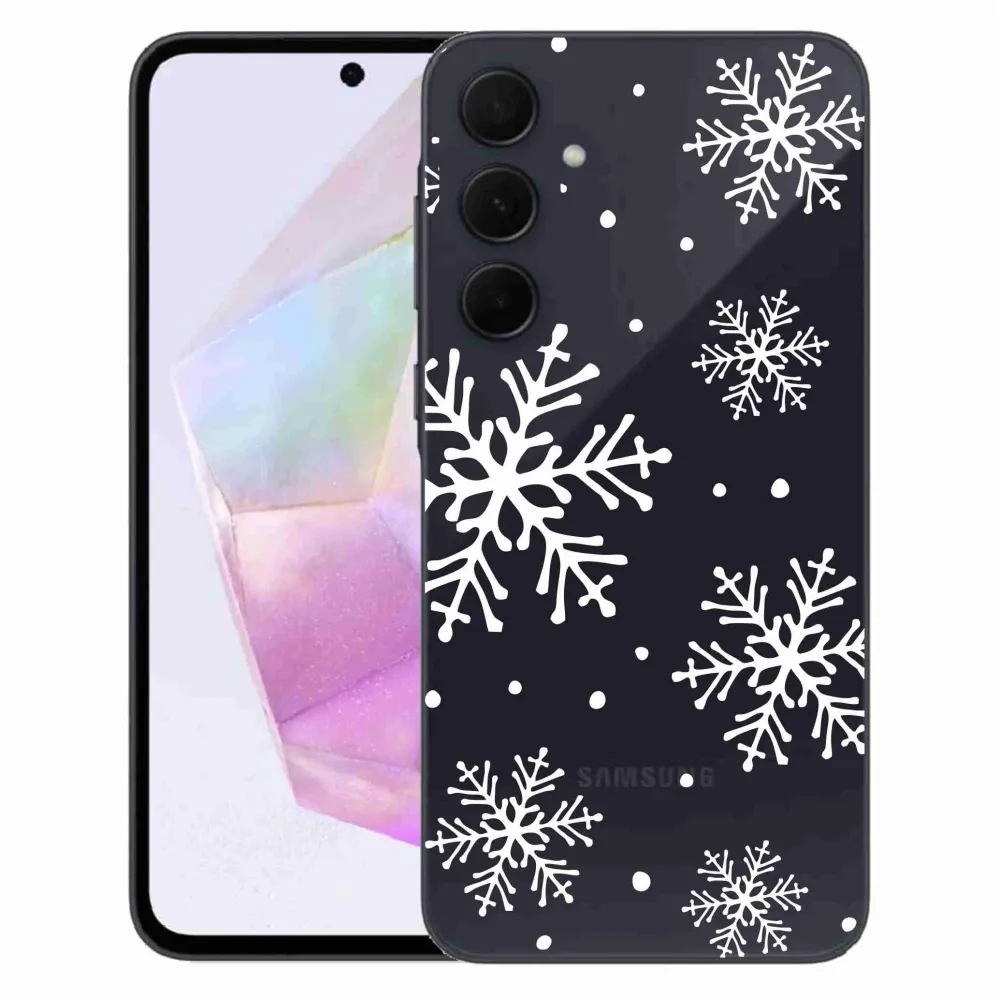 Rugalmas zselés borító mmCase Samsung Galaxy A35 5G képével - fehér hópelyhek átlátszó háttéren