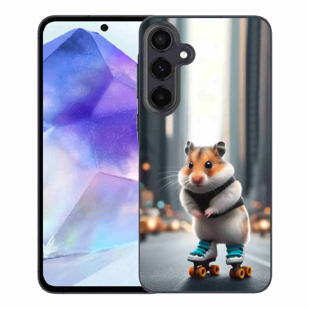 Rugalmas zselés borító mmCase a Samsung Galaxy A55 5G képével - hörcsög a korcsolyán