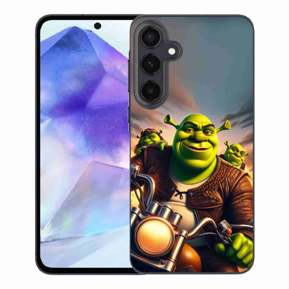 Rugalmas zselés tok mmCase a Samsung Galaxy A55 5G képével - Shrek egy motorkerékpáron