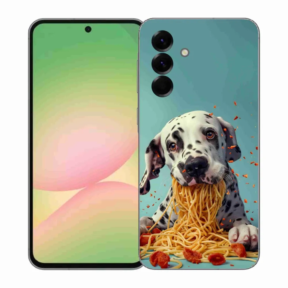 Rugalmas kesztyűhuzat mmCase a Samsung Galaxy A57 5G képével - dalmát és spagetti