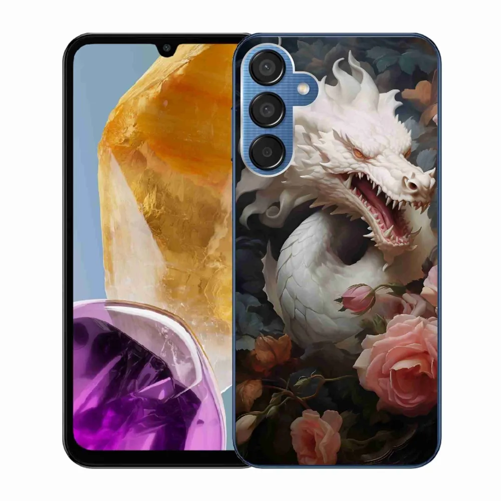 Rugalmas zselés tok mmCase a Samsung Galaxy M15 5G képével - fehér sárkány