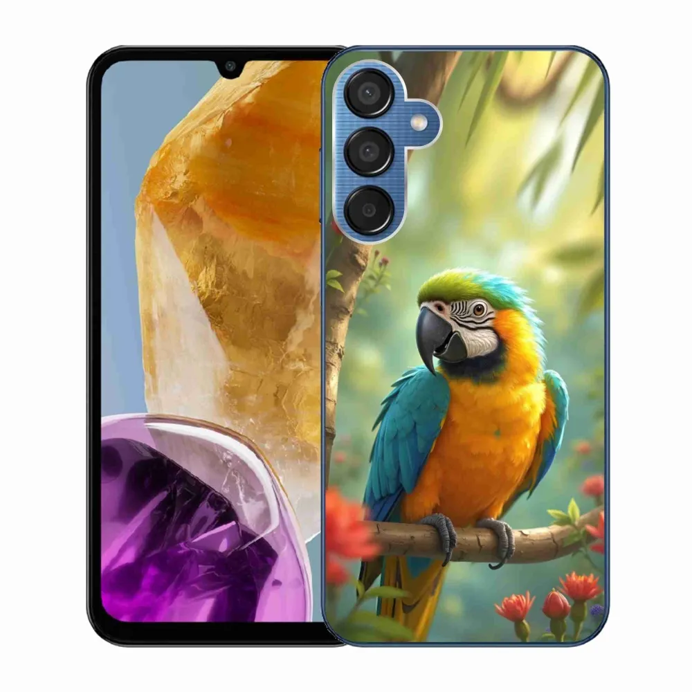 Zselés borítás mmCase Samsung Galaxy M15 5G - papagáj ara kék és sárga