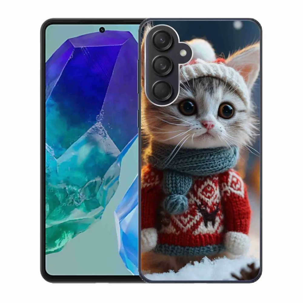 Gél borító mmCase a Samsung Galaxy M55 5G képével - cica pulóverben