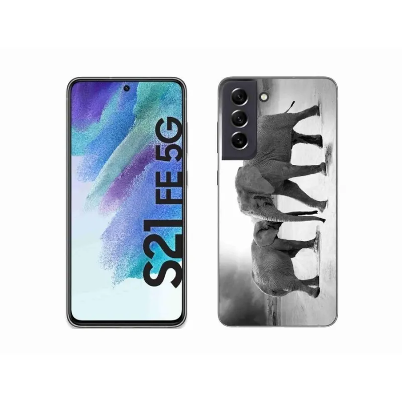 Zselés borítás mmCase Samsung Galaxy S21 FE 5G - fekete-fehér elefántokhoz