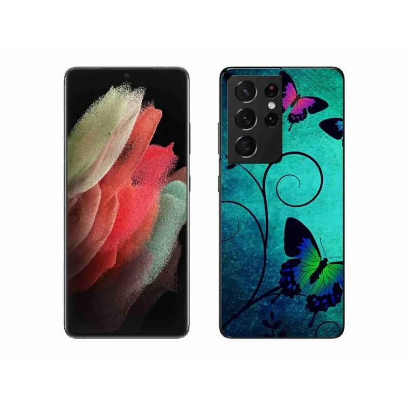 Zselés borítás mmCase Samsung Galaxy S21 Ultra 5G - színes pillangókhoz
