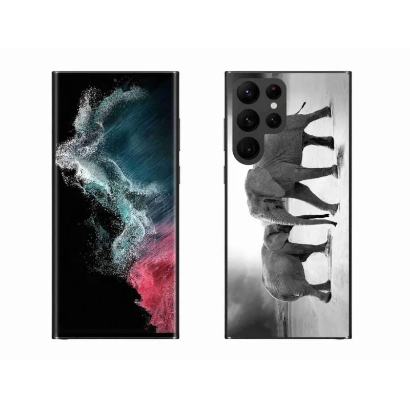 Zselés borítás mmCase Samsung Galaxy S22 Ultra 5G - fekete és fehér elefántokhoz
