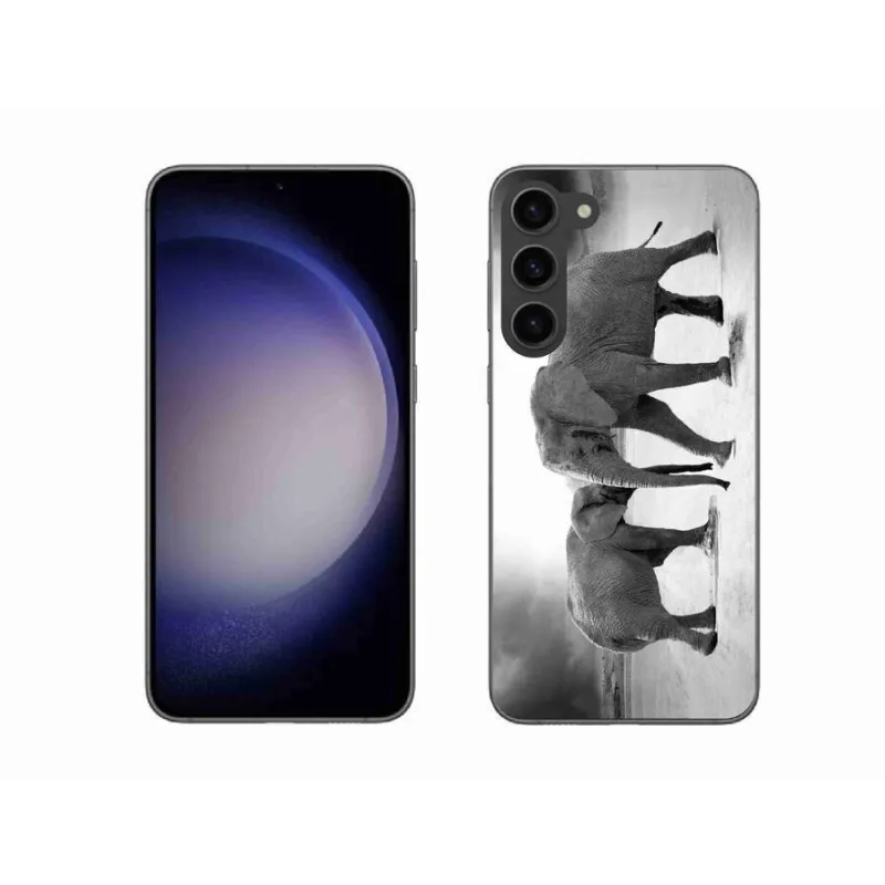 Zselés borítás mmCase Samsung Galaxy S23+ 5G - fekete és fehér elefántokhoz
