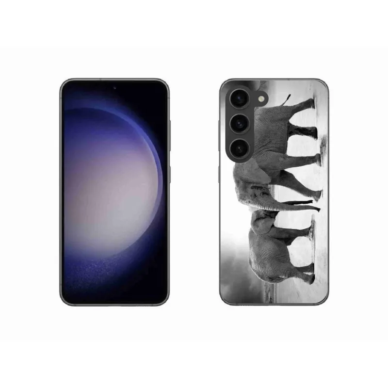 Zselés borítás mmCase Samsung Galaxy S23 5G - fekete és fehér elefántokhoz