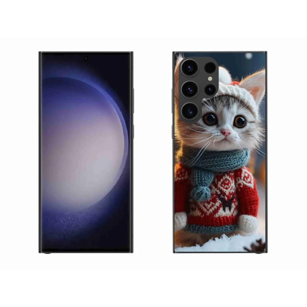 Rugalmas zselés tok mmCase a Samsung Galaxy S23 Ultra 5G képével - cica pulóverben