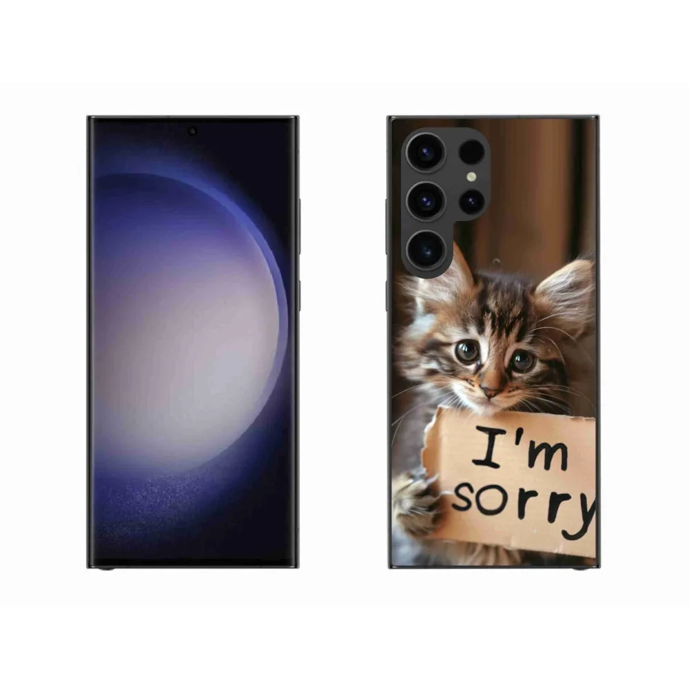 Rugalmas zselés tok mmCase a Samsung Galaxy S23 Ultra 5G képével - macska bocsánatkérés